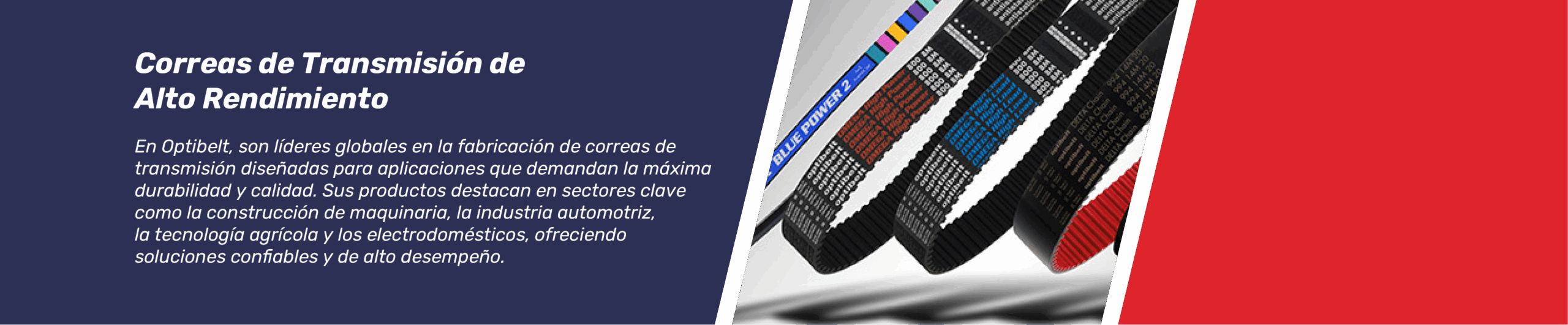 Son componentes de alta calidad que aseguran una transmisión eficiente de potencia en aplicaciones industriales y agrícolas gracias a su perfil trapezoidal, que optimiza el contacto con las poleas.